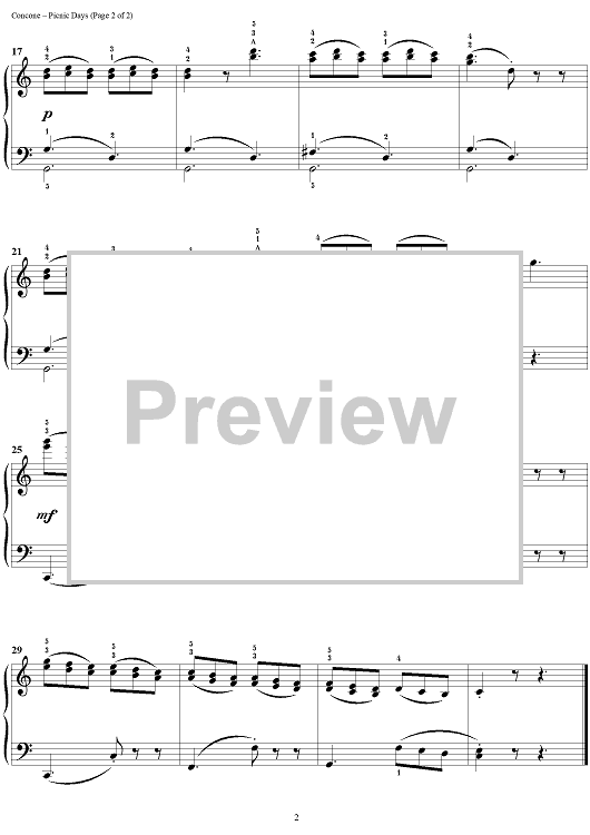 Digital Sheet Music for Picnic Days by Giuseppe Concone scored for Easy Piano; id:295710