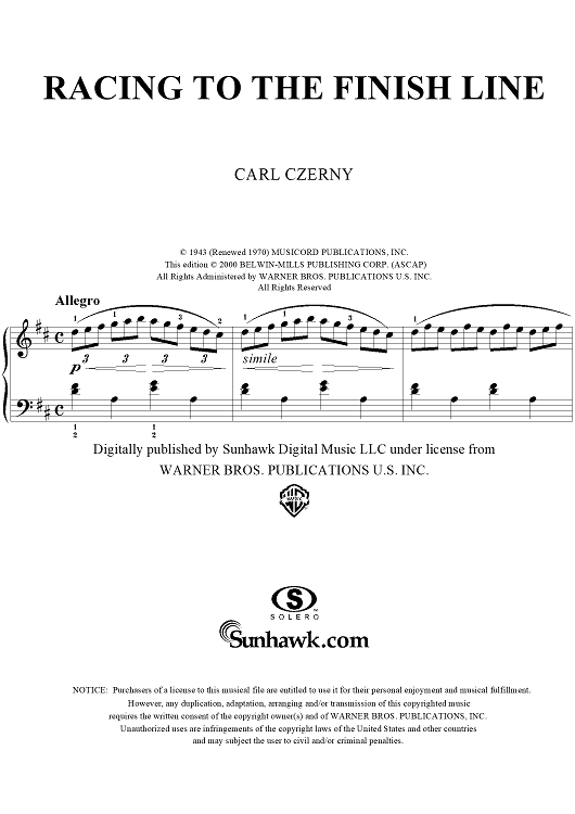 "Racing to the Finish Line" Sheet Music by Carl Czerny