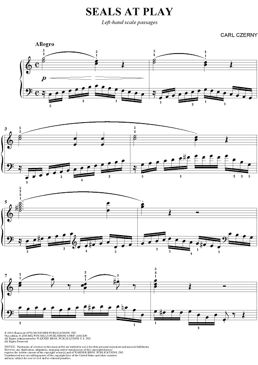 Digital Sheet Music for Seals at Play by Carl Czerny scored for Easy Piano; id:295715