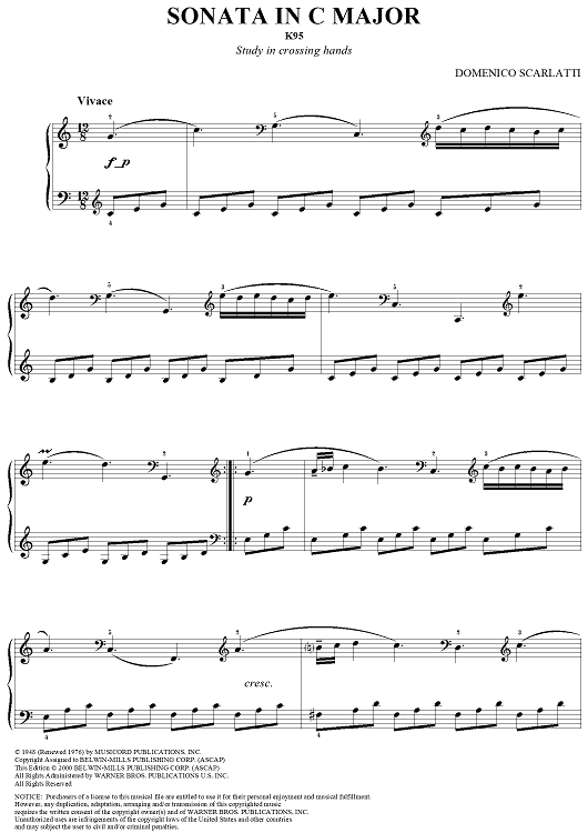 "Sonata in C Major, K95" Sheet Music by Domenico Scarlatti