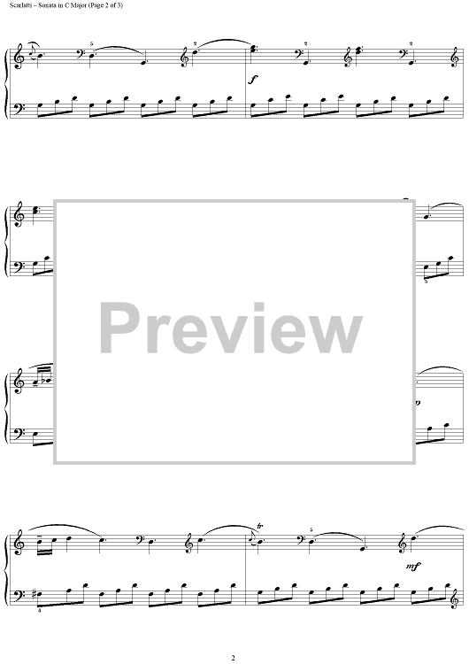 Digital Sheet Music for Sonata in C Major, K95 by Domenico Scarlatti scored for Piano Solo; id:295734