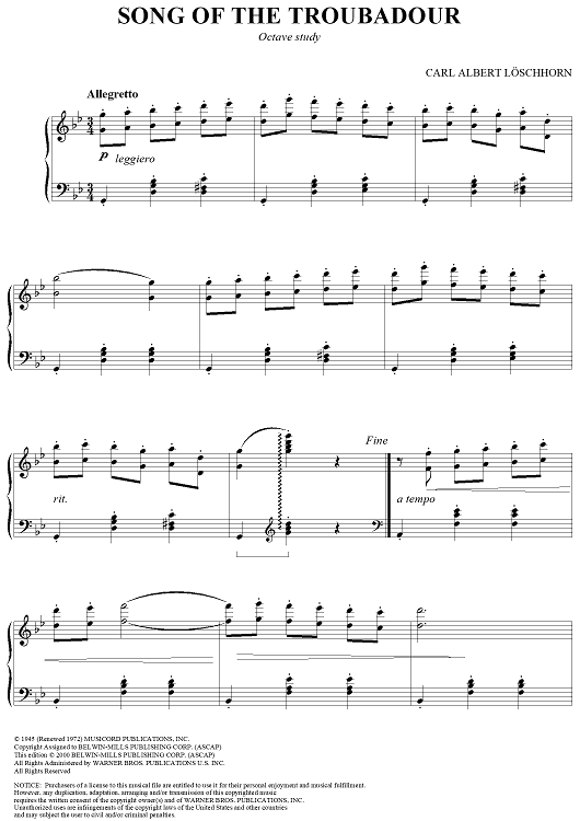 Digital Sheet Music for Song of the Troubadour by A. Loeschhorn scored for Piano Solo; id:295867