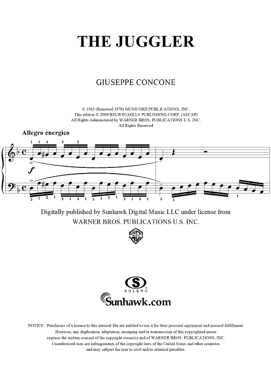 Digital Sheet Music for The Juggler by Giuseppe Concone scored for Easy Piano; id:295717