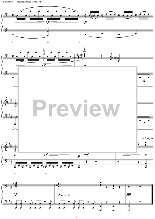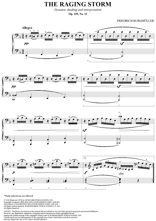Digital Sheet Music for The Raging Storm, Op. 109, No. 13 by Friedrich Burgmüller scored for Piano Solo; id:295726