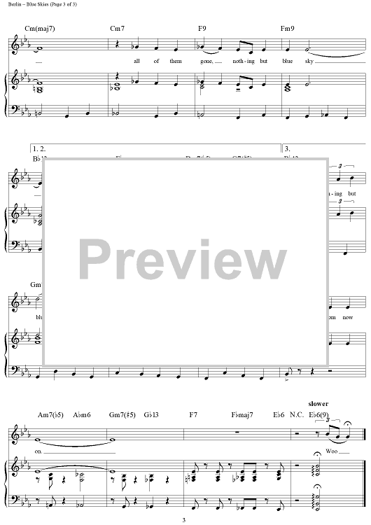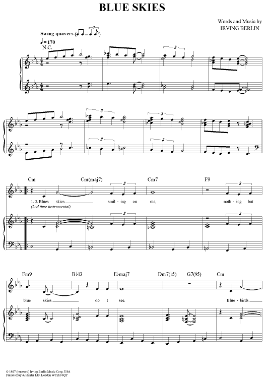 Digital Sheet Music for Blue Skies by Irving Berlin, Eva Cassidy scored for Piano/Vocal/Chords; id:297080