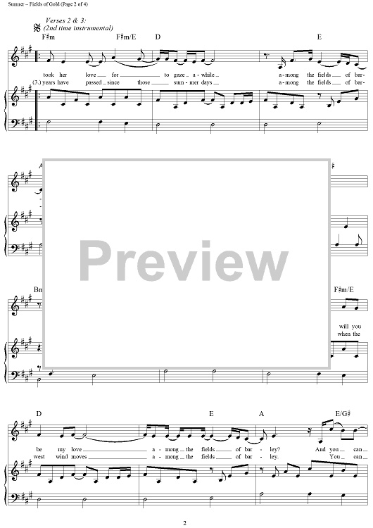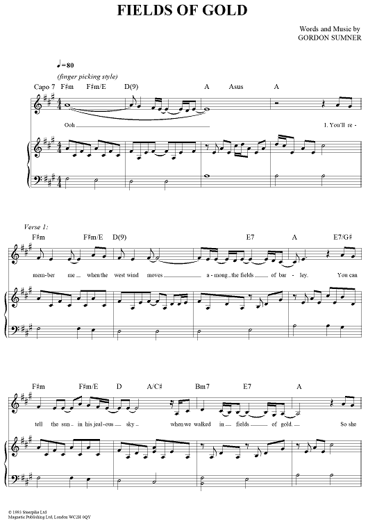 Digital Sheet Music for Fields of Gold by Sting, Eva Cassidy scored for Piano/Vocal/Chords; id:297084