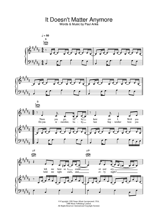 Digital Sheet Music for It Doesn't Matter Anymore by Eva Cassidy scored for Piano/Vocal/Chords; id:376857