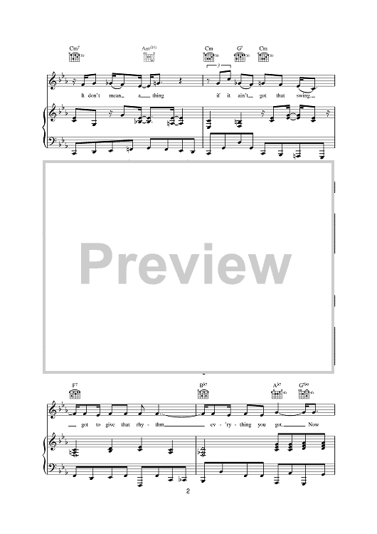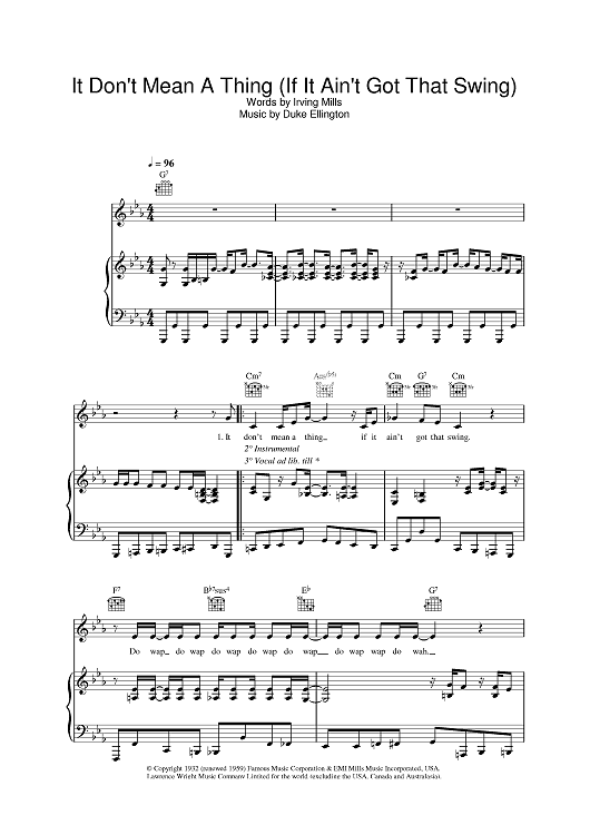 Digital Sheet Music for It Don't Mean A Thing (If It Ain't Got That Swing) by Eva Cassidy scored for Piano/Vocal/Chords; id:376098