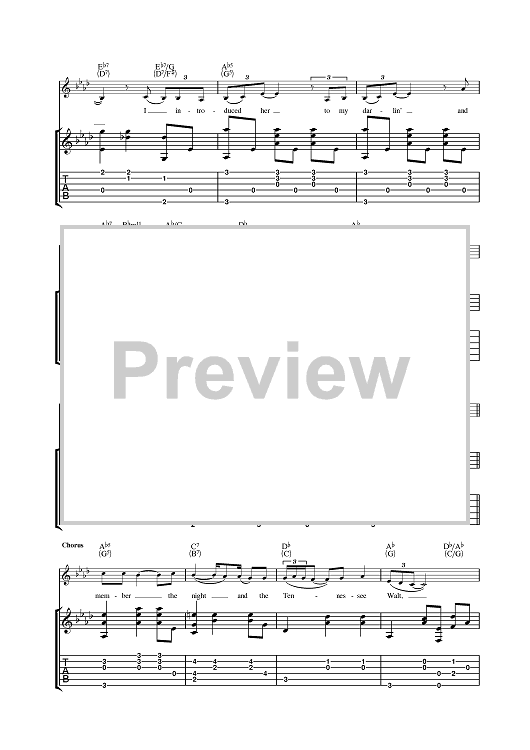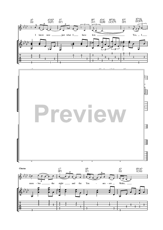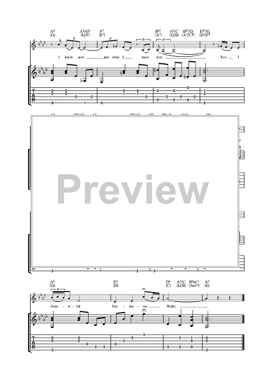 Digital Sheet Music for Tennessee Waltz by Redd Stewart, Pee Wee King, Eva Cassidy scored for Guitar Tab; id:378542