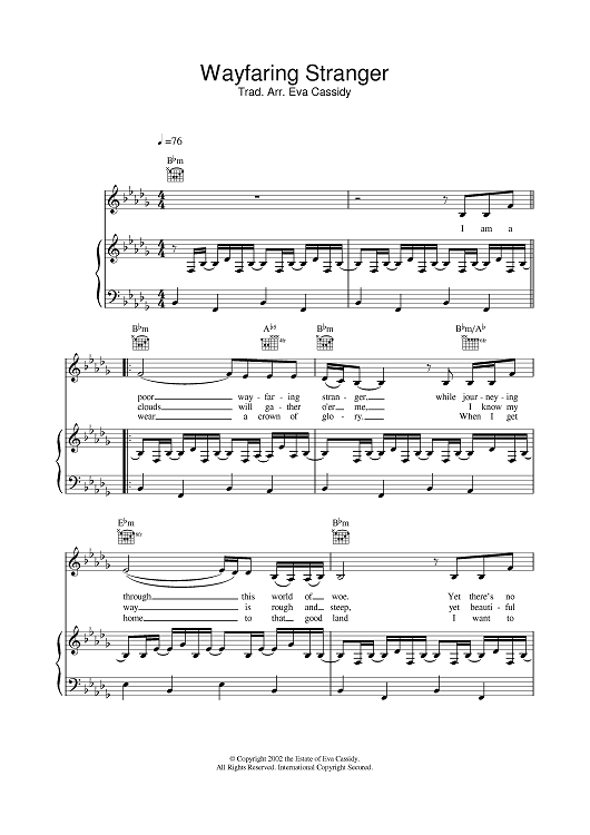 "Wayfaring Stranger (no intro)" Sheet Music by Eva Marie Cassidy