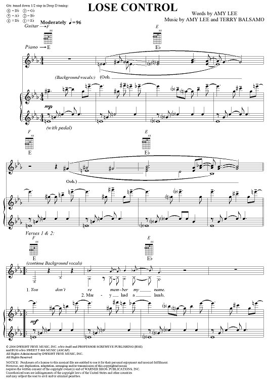 Alfred is pleased to release the album-matching folio for Evanescence's third record, The Open Door. Released in 2006, The Open Door reached the No. 1 spot on Billboard's Top 200 Chart (2006). This book provides the lyrics along with piano and chord arrangements for all the songs on the record.