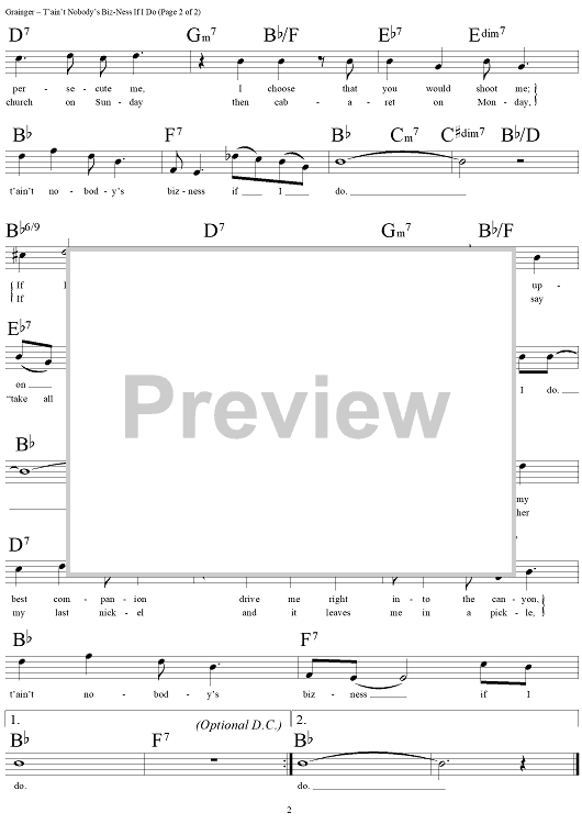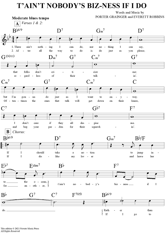 Digital Sheet Music for T'ain't Nobody's Biz-Ness If I Do by Porter Grainger, Everett Robbins scored for Lead Sheet; id:291745