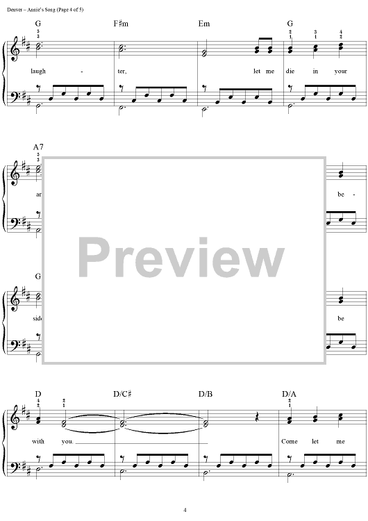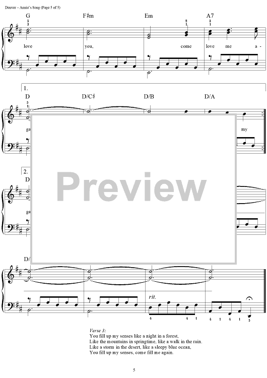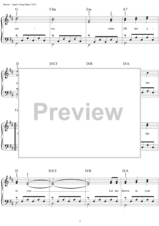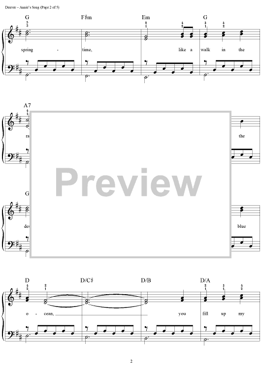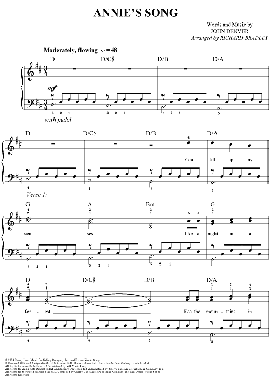 Digital Sheet Music for Annie's Song by Richard Bradley, John Denver scored for Easy Piano; id:289141