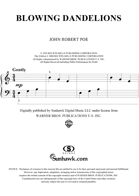Digital Sheet Music for Blowing Dandelions by John Robert Poe scored for Piano Solo; id:285972