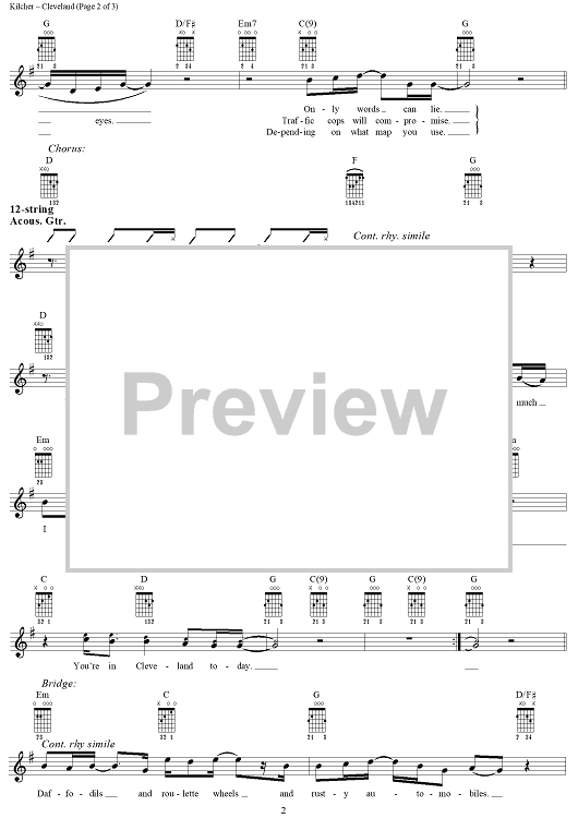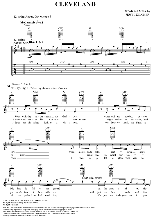 Digital Sheet Music for Cleveland by Jewel, Jewel Kilcher scored for Guitar Tab/Vocal; id:288392