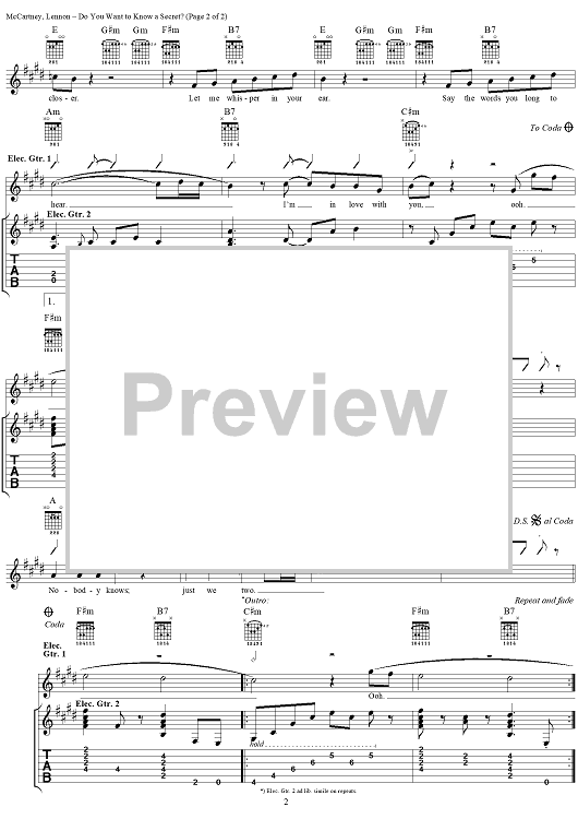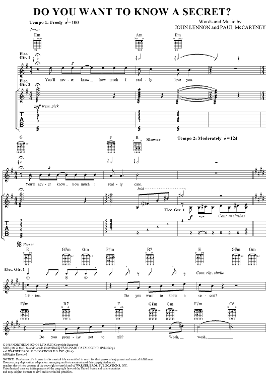 "Do You Want to Know a Secret?" Sheet Music by The Beatles