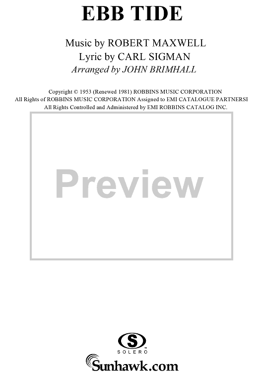 Digital Sheet Music for Ebb Tide by Robert Maxwell, Carl Sigman, John Brimhall scored for Easy Piano/Vocal; id:118949