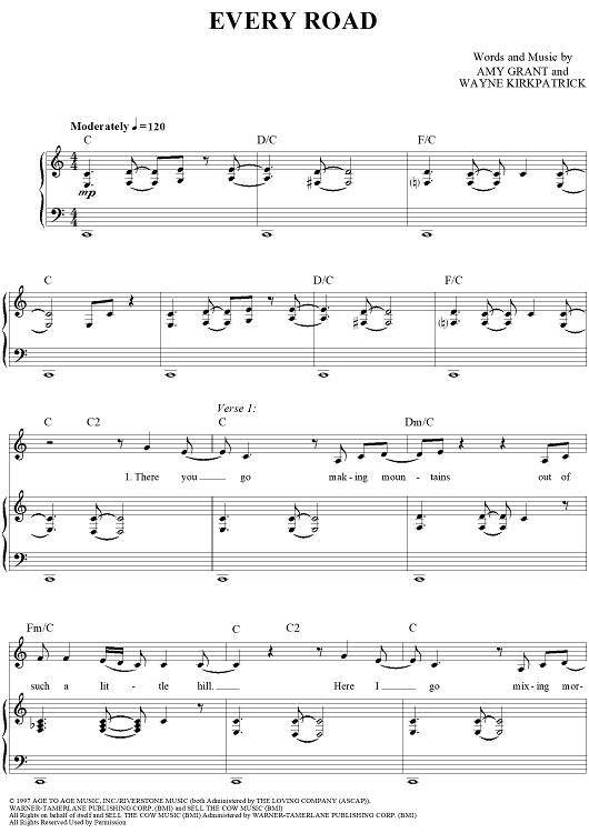 Digital Sheet Music for Every Road by Wayne Kirkpatrick, Amy Grant scored for Easy Piano/Vocal; id:418378