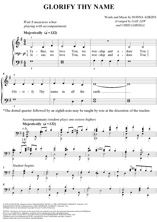 Digital Sheet Music for Glorify Thy Name by Gail Lew, Donna Adkins, Chris Lobdell scored for Easy Piano/Vocal; id:304356
