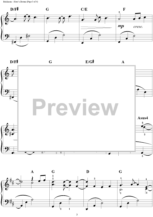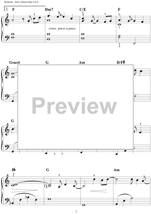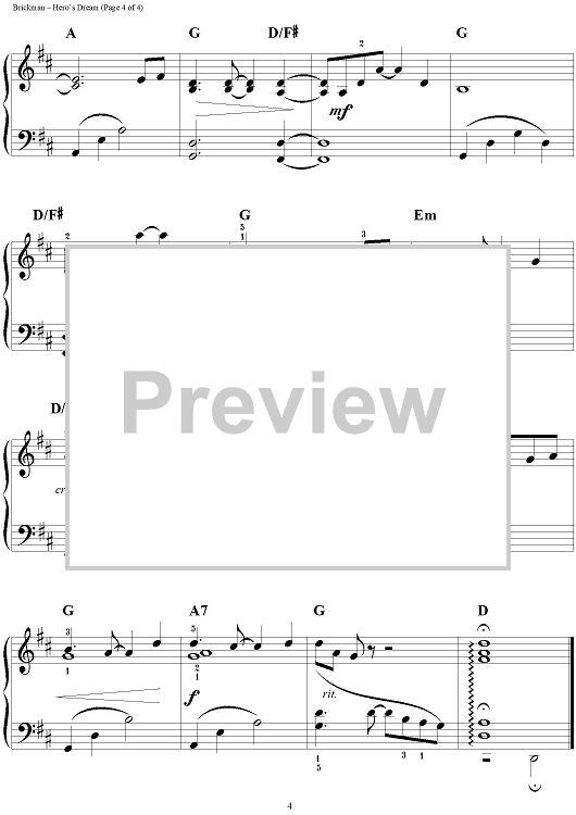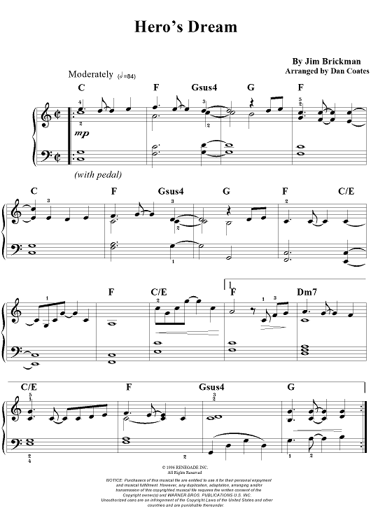 Digital Sheet Music for Hero's Dream by Jim Brickman, Dan Coates scored for Easy Piano; id:94985