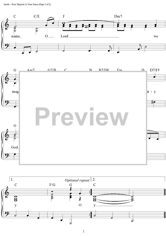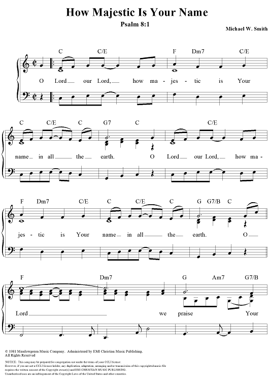 Digital Sheet Music for How Majestic Is Your Name by Michael W. Smith scored for Piano/Vocal/Chords; id:111865