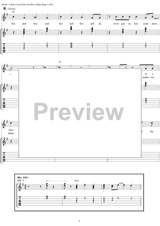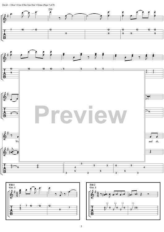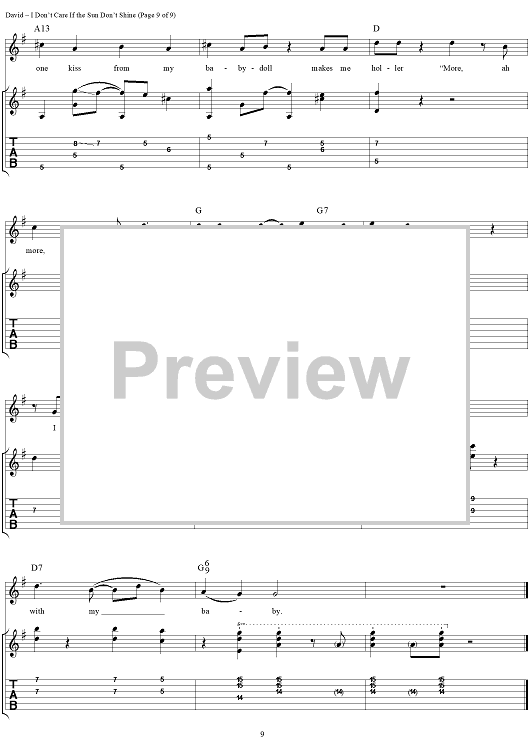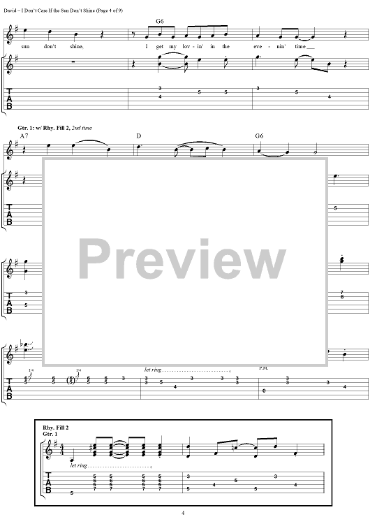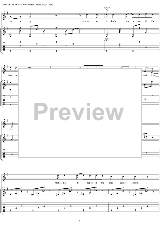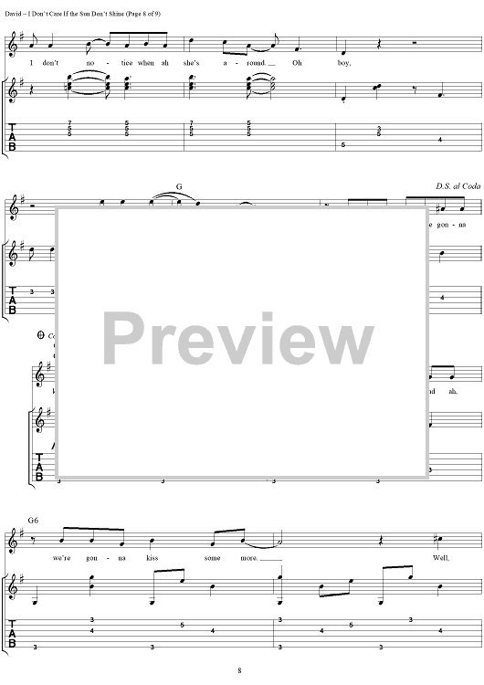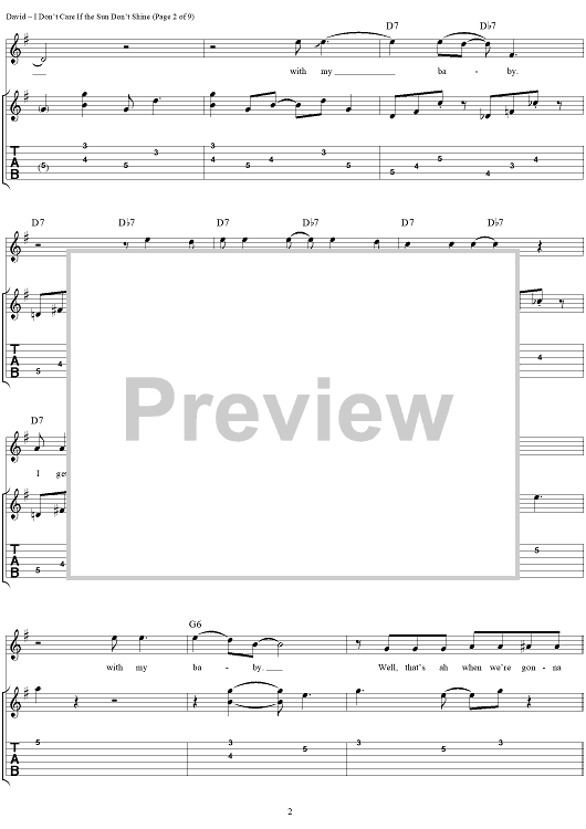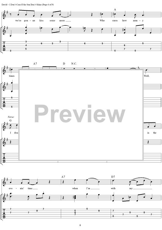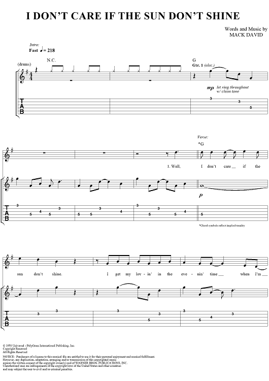 Digital Sheet Music for I Don't Care If the Sun Don't Shine by Elvis Presley, Mack David scored for Guitar Tab/Vocal; id:234598
