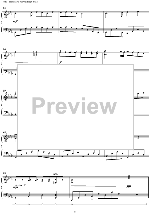 "Melancholy Minutes" Sheet Music by Joyce Grill