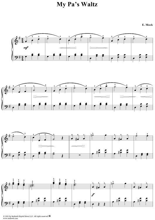 Digital Sheet Music for My Pa's Waltz by E. Mack scored for Piano Solo; id:294726