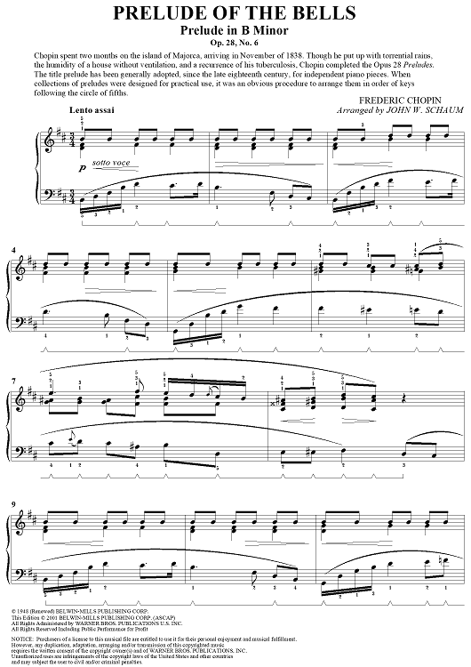 "Prelude of the Bells (Prelude In B Minor, Op. 28, No. 6)" Sheet Music by Frederic Chopin