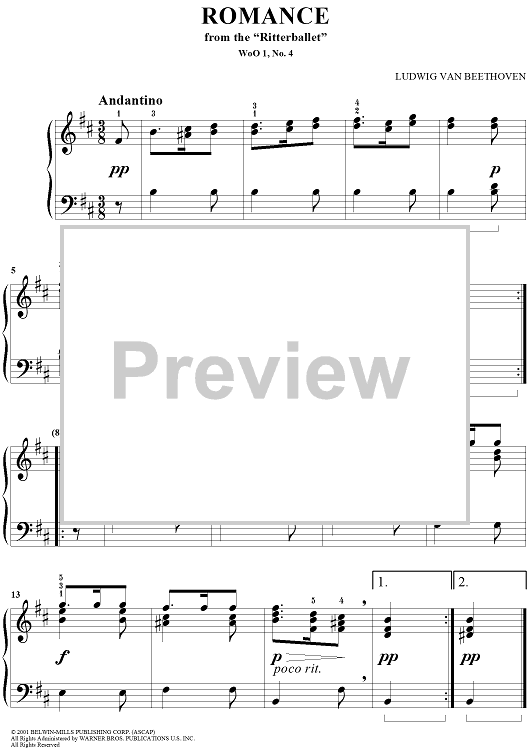 Digital Sheet Music for Romance, from the "Ritterballet", WoO1, No. 4 by Ludwig van Beethoven, Donald Beattie, Delayna Beattie scored for Easy Piano; id:297638
