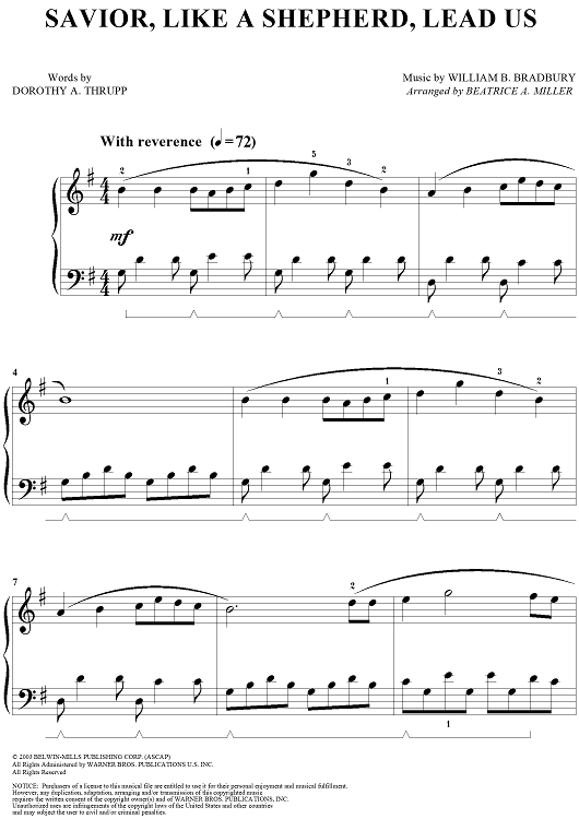 Digital Sheet Music for Savior, Like a Shepherd, Lead Us by Beatrice A. Miller, Dorothy A. Thrupp, William B. Bradbury scored for Easy Piano; id:297135
