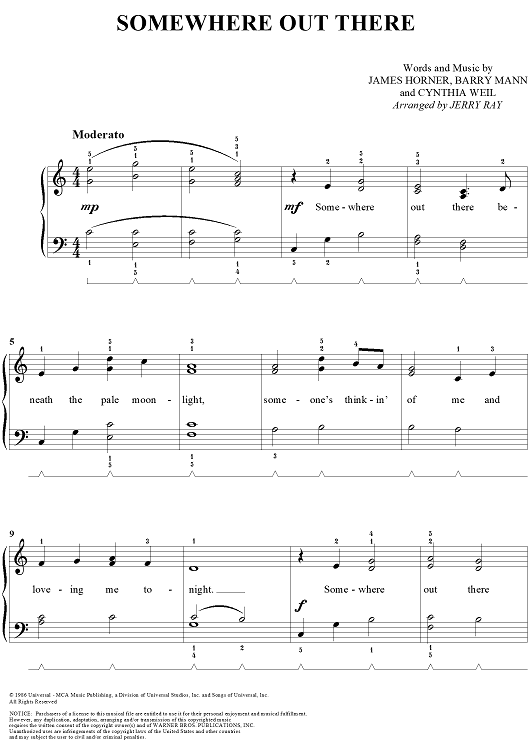 Digital Sheet Music for Somewhere Out There by Jerry Ray, Barry Mann, Cynthia Weil, James Horner scored for Easy Piano/Vocal; id:317751