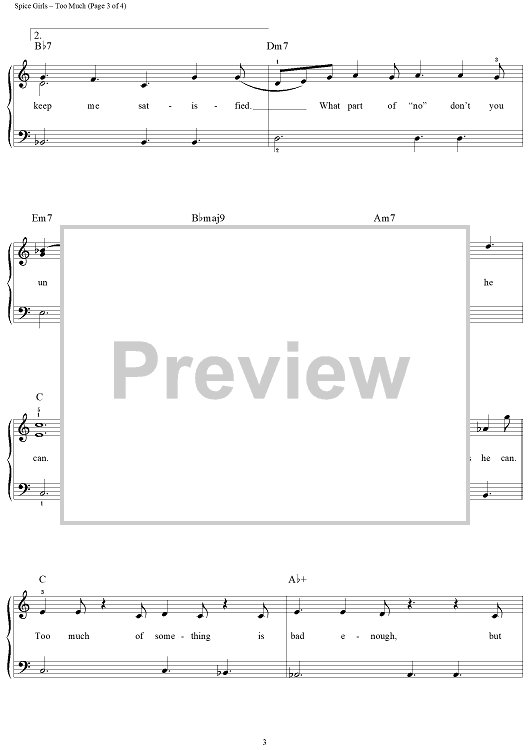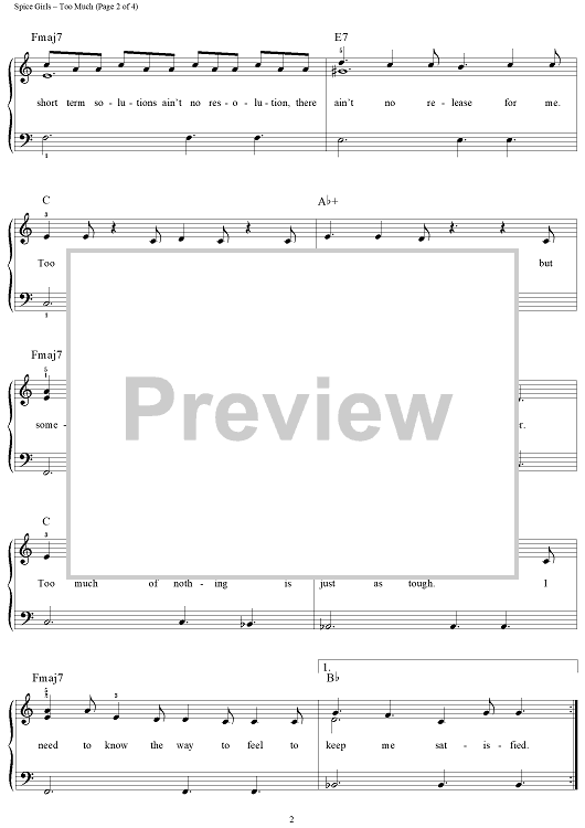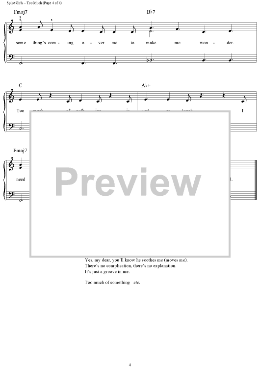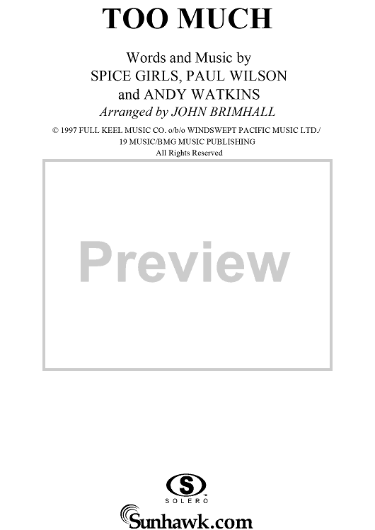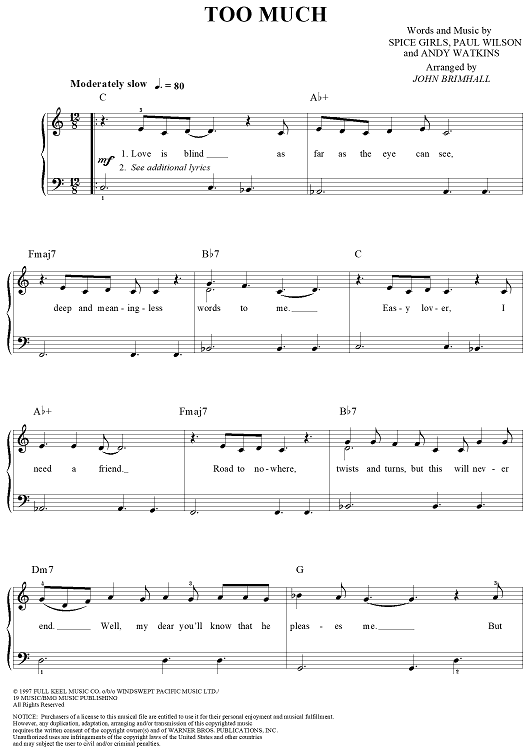 Digital Sheet Music for Too Much by Paul Wilson, Andy Watkins, John Brimhall, Spice Girls scored for Easy Piano/Vocal; id:118964