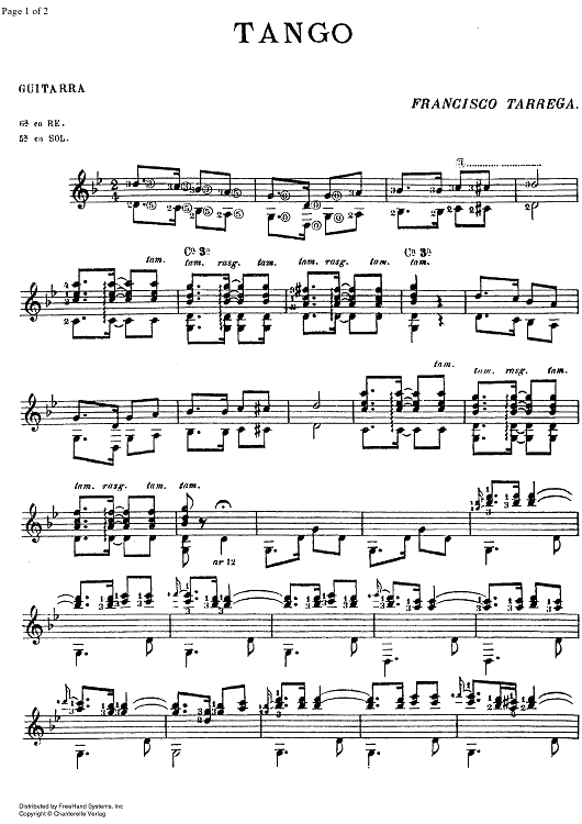 Digital Sheet Music for Tango by F. Tarrega scored for Guitar; id:327405