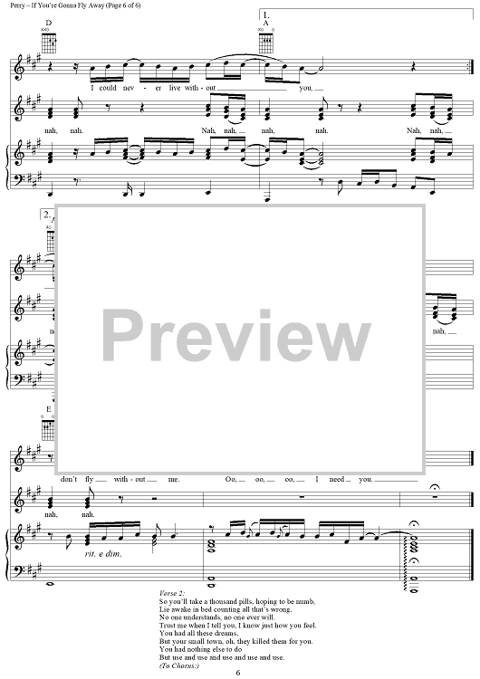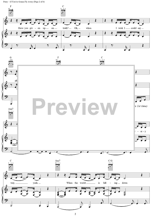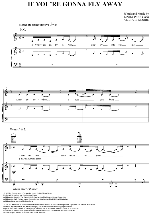 Digital Sheet Music for If You're Gonna Fly Away by Faith Hill, Linda Perry, Alicia B. Moore scored for Piano/Vocal/Chords; id:294622
