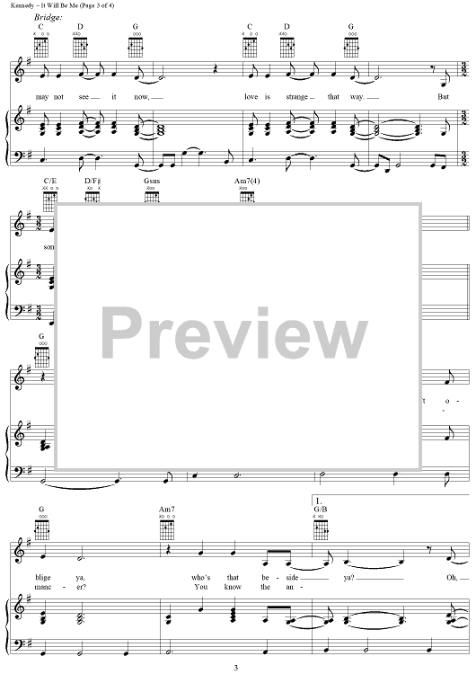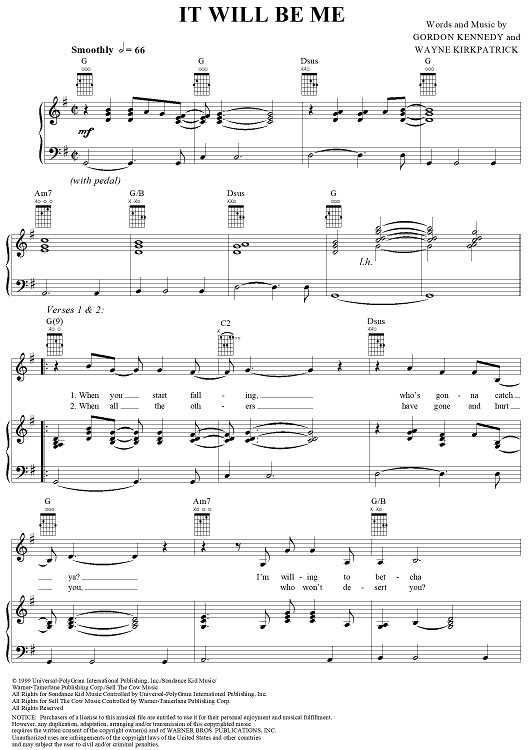 Digital Sheet Music for It Will Be Me by Faith Hill, Wayne Kirkpatrick, Gordon Kennedy scored for Piano/Vocal/Chords; id:235203