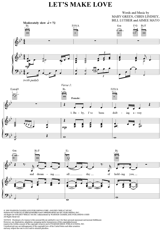 Digital Sheet Music for Let's Make Love by Faith Hill, Aimee Mayo, Marv Green, Chris Lindsey, Bill Luther scored for Piano/Vocal/Chords; id:235202