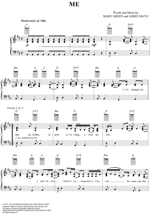 Digital Sheet Music for Me by Faith Hill, Aimee Mayo, Marv Green scored for Piano/Vocal/Chords; id:267656