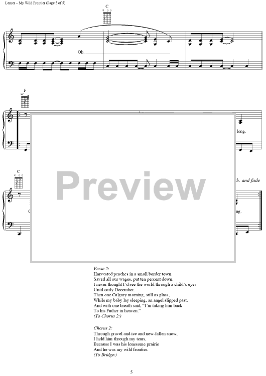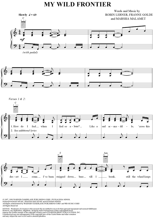 Digital Sheet Music for My Wild Frontier by Faith Hill, Robin Lerner, Franne Golde, Marsha Malamet scored for Piano/Vocal/Chords; id:115904