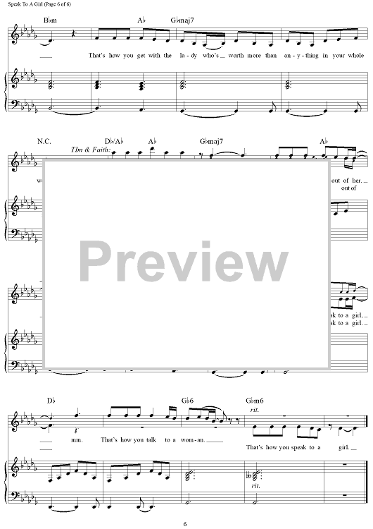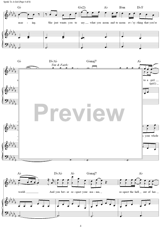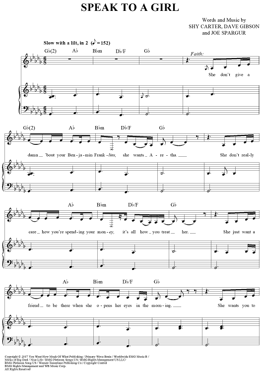 Digital Sheet Music for Speak To A Girl by Tim McGraw, Faith Hill, Dave Gibson, Joe Spargur, Shy Carter scored for Piano/Vocal/Chords; id:464287