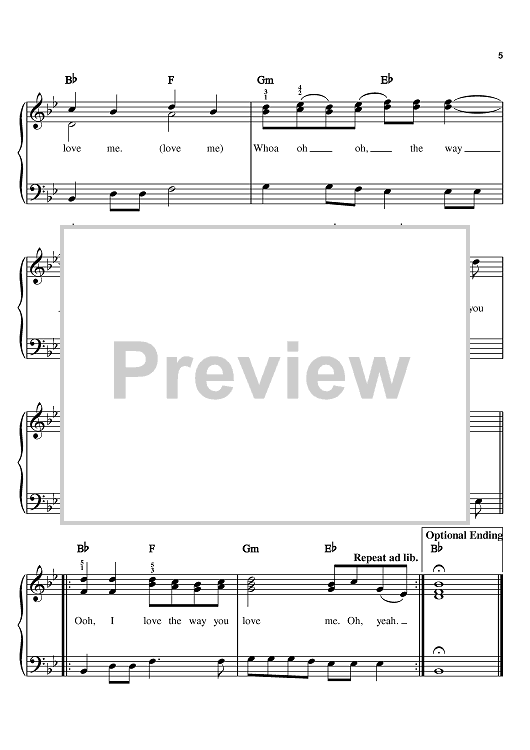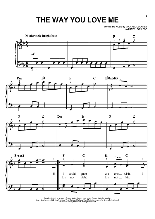 Digital Sheet Music for The Way You Love Me by Faith Hill, Michael Dulaney, Keith Follese scored for Easy Piano; id:367813