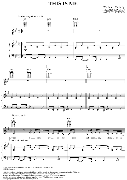 Digital Sheet Music for This Is Me by Faith Hill, Troy Verges, Hillary Lindsey scored for Piano/Vocal/Chords; id:294625