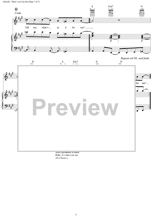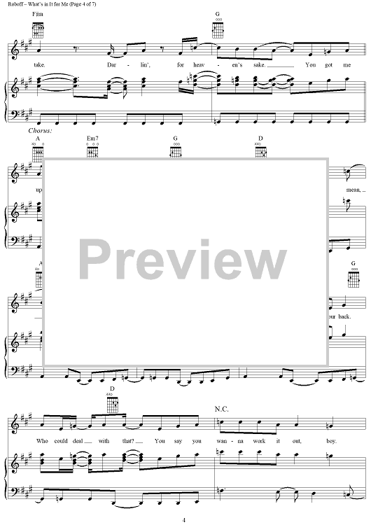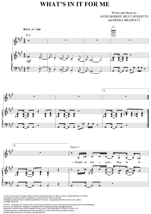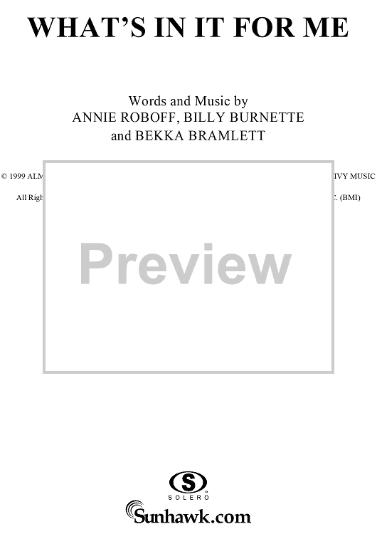 Digital Sheet Music for What's In It For Me by Faith Hill, Annie Roboff, Bekka Bramlett scored for Piano/Vocal/Chords; id:235199