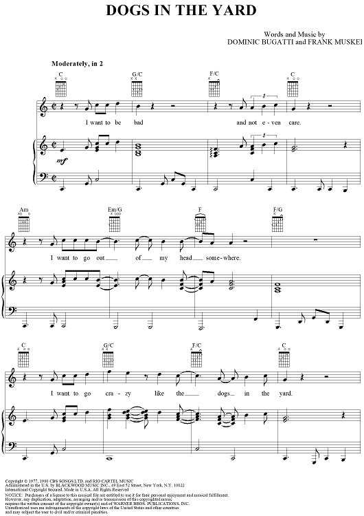 Digital Sheet Music for Dogs in the Yard by Dominic Bugatti, Frank Musker scored for Piano/Vocal/Chords; id:273600