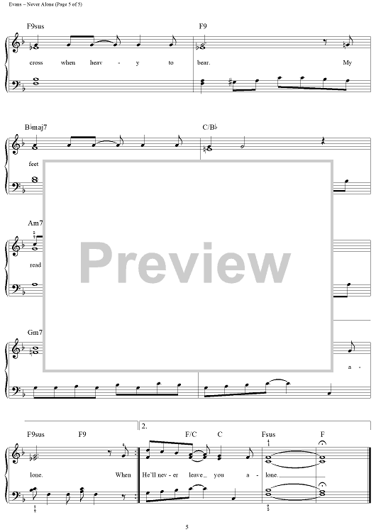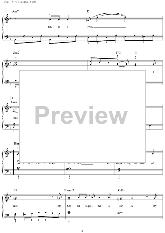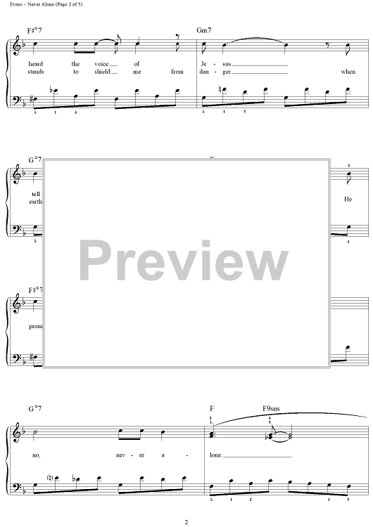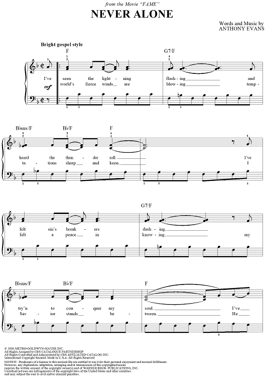 Digital Sheet Music for Never Alone by Anthony Evans scored for Easy Piano/Vocal; id:241794