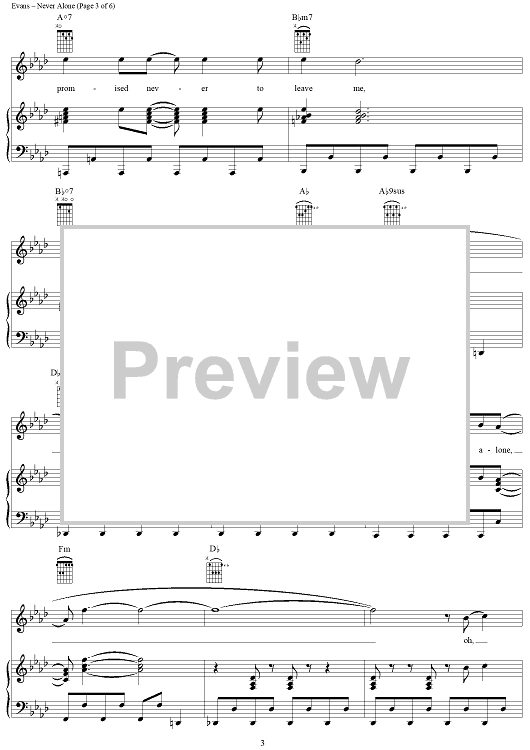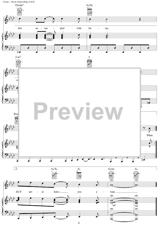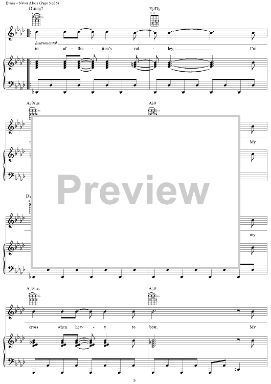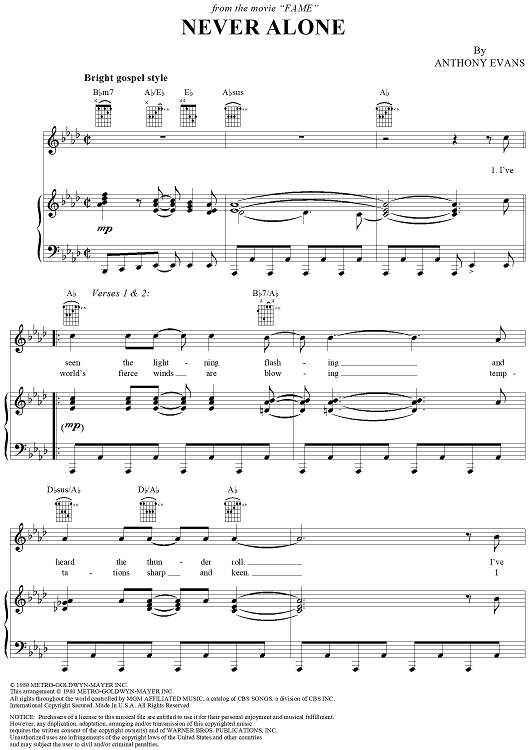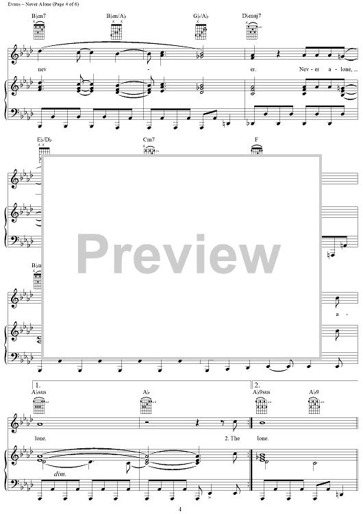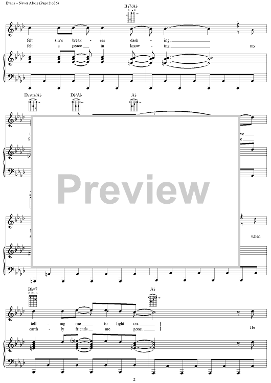 Digital Sheet Music for Never Alone by Anthony Evans scored for Piano/Vocal/Chords; id:270012