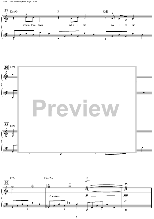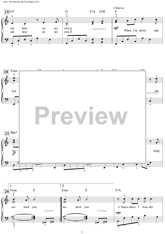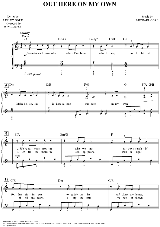 Digital Sheet Music for Out Here On My Own by Dan Coates, Michael Gore, Lesley Gore scored for Easy Piano/Vocal/Chords; id:444721