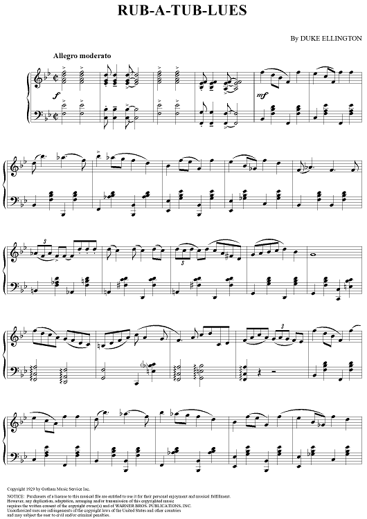 Digital Sheet Music for Rub-a-Tub-Lues by Duke Ellington scored for Piano Solo; id:270324