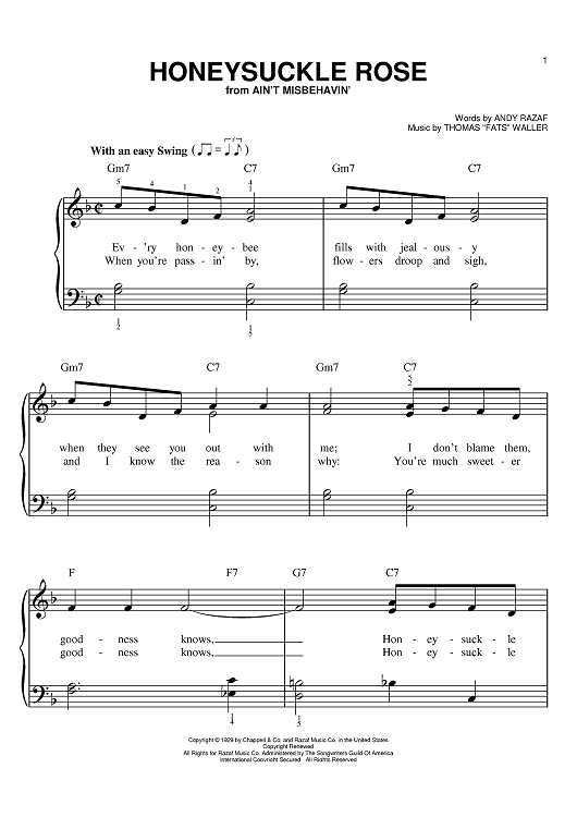 Digital Sheet Music for Honeysuckle Rose by Fats Waller, Andy Razaf, Willie Nelson scored for Easy Piano; id:375159