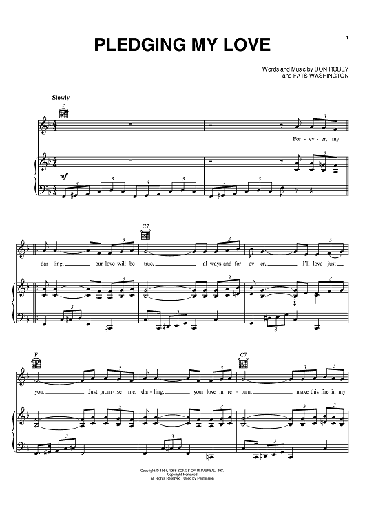 Digital Sheet Music for Pledging My Love by Elvis Presley, Don Robey, Emmylou Harris, Fats Washington, Johnny Ace scored for Piano/Vocal/Chords; id:381251